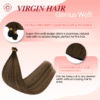 Brown Balayage Invisible Genius Weft Human Hair Extensions (#4/27/4) are premium virgin genius weft hair extensions designed for a flat, natural blend. Made from 100% virgin human hair, these wefts maintain cuticle integrity for softness, strength, and consistent texture. The genius weft construction offers flexibility while reducing bulk, allowing the hair to lay smoothly and blend naturally.