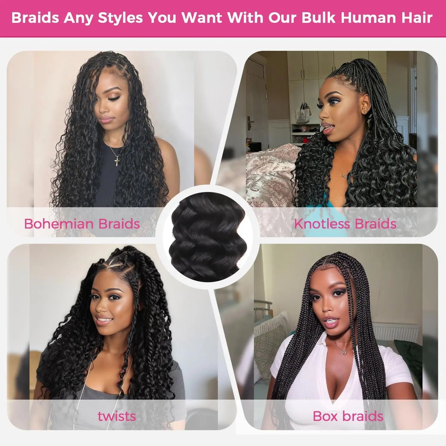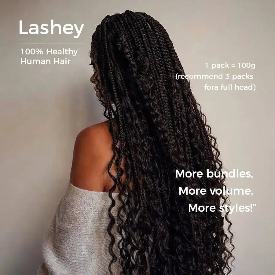 Lashey Double Drawn Human Braiding Hair Bulk for Boho Braids Knotless Box Braid is premium bulk human hair designed for boho-inspired styles and natural-looking results. Sourced from high-quality human hair, this bulk hair maintains a soft texture and consistent thickness throughout. It is suitable for creating versatile looks while preserving a natural appearance.