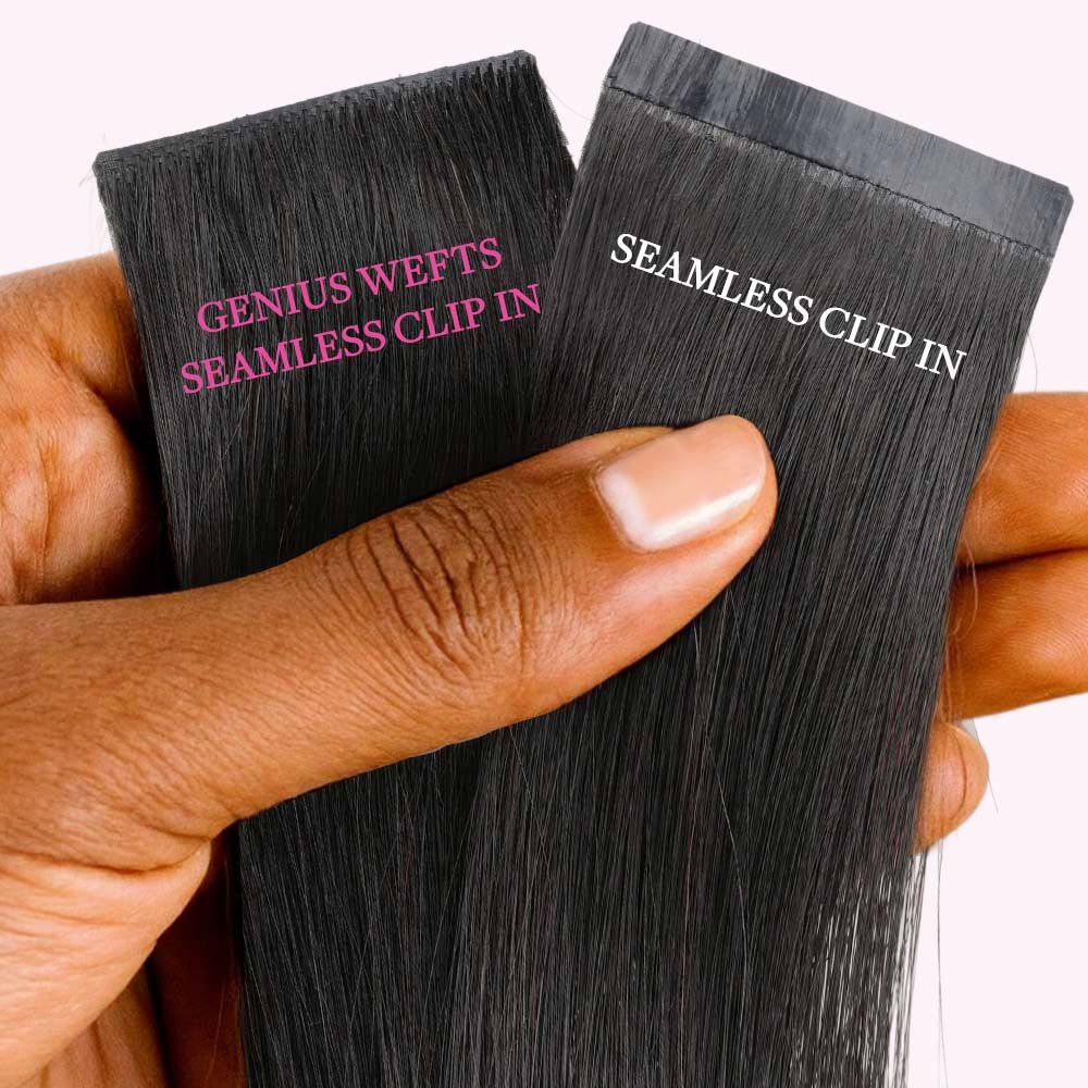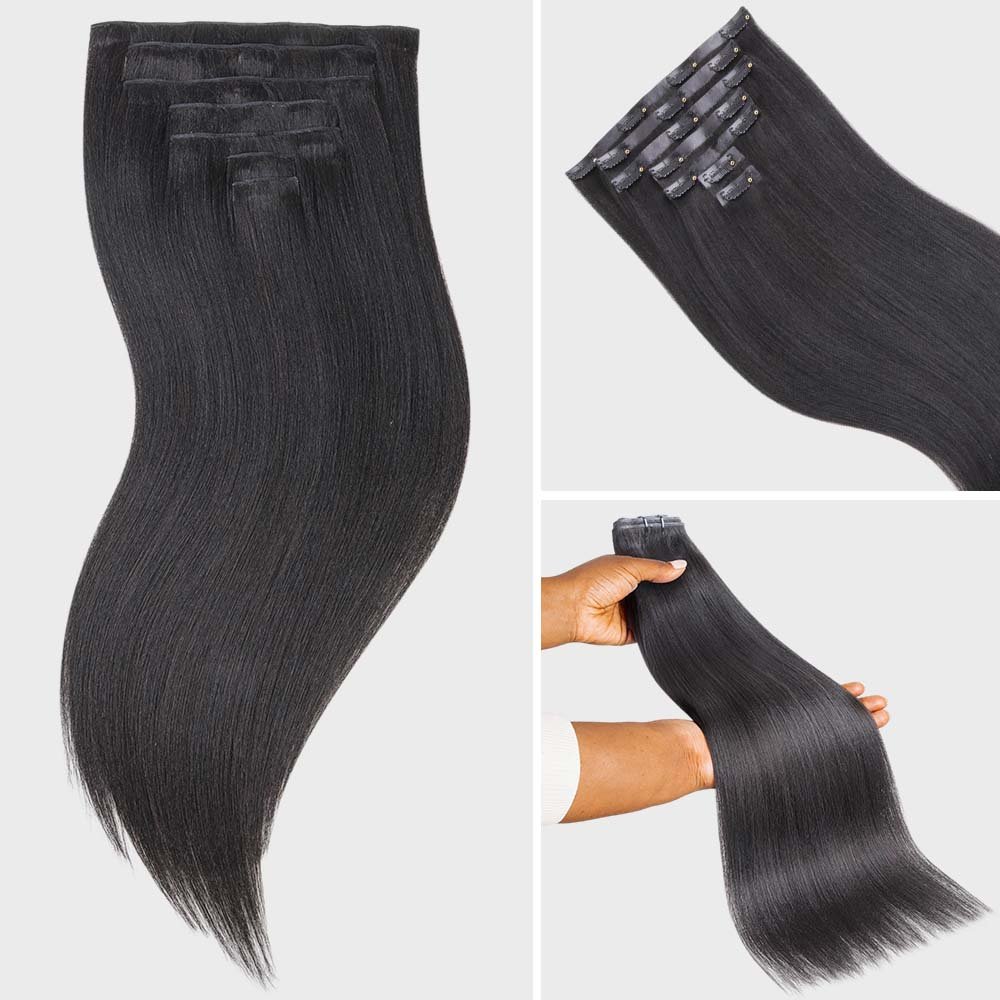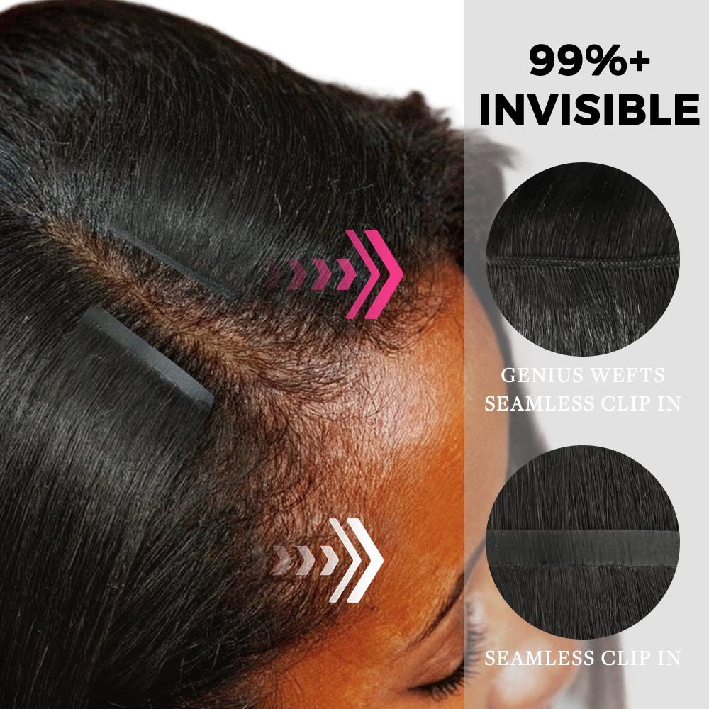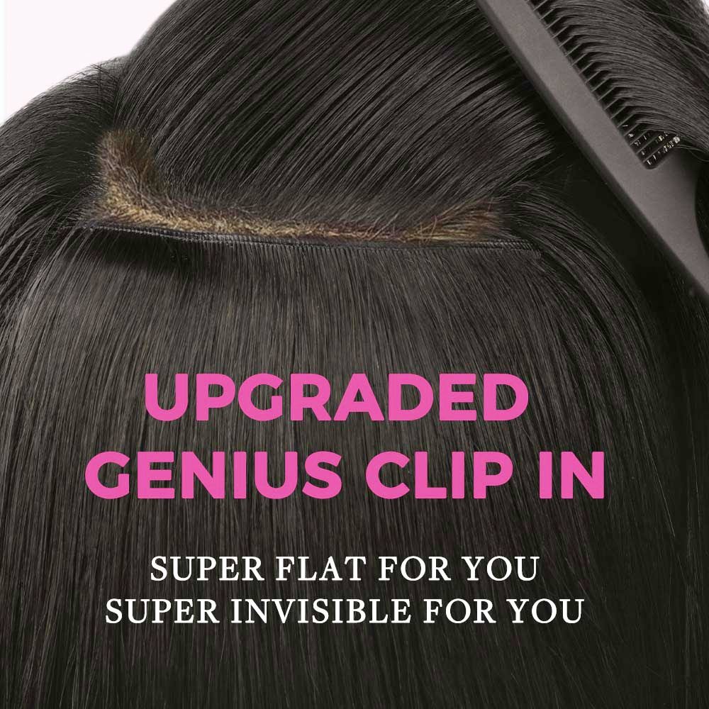 Lashey Genius Seamless Clip in Hair Extensions Yaki Straight Real Human Hair are premium genius clip-in hair extensions designed for a smooth, lightweight feel and natural blend. Made from high-quality human hair, these clip-ins feature a refined weft structure that lays flat against the scalp for a comfortable and discreet finish. Ideal for enhancing volume and length with flexible styling options.