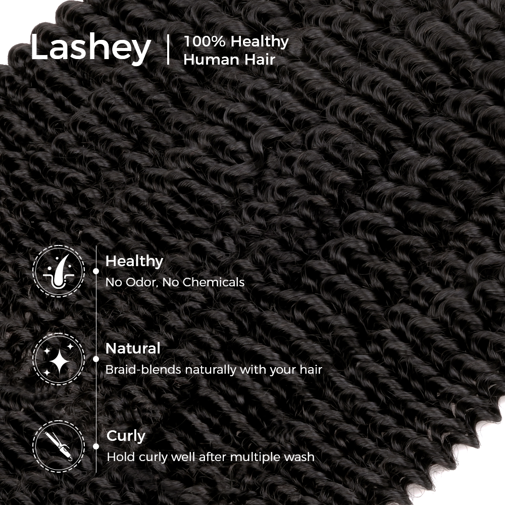 Lashey Human Hair Bulk Kinky Curly for Boho Braiding is premium bulk human hair designed for boho-inspired styles and natural-looking results. Sourced from high-quality human hair, this bulk hair maintains a soft texture and consistent thickness throughout. It is suitable for creating versatile looks while preserving a natural appearance.
