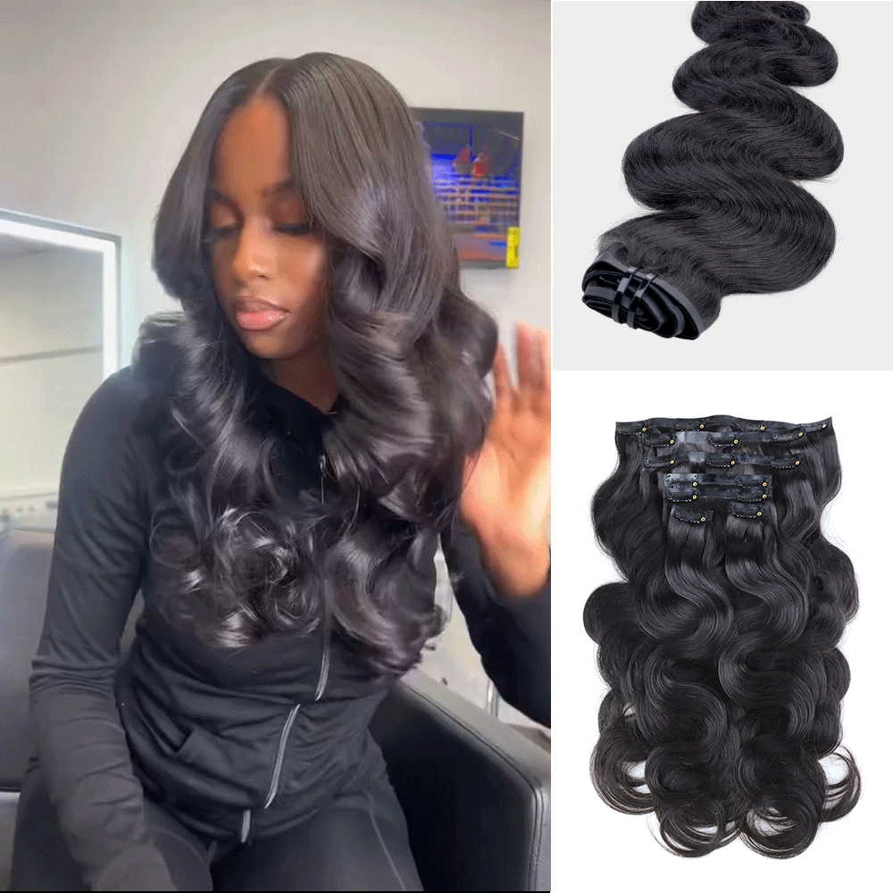 Lashey Seamless Clip in Hair Extensions Super Flat Body Wave Human Hair