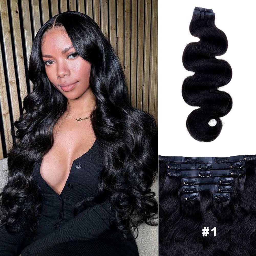 Lashey Seamless Clip in Hair Extensions Super Flat Colored Body Wave Real Human Hair are premium seamless clip-in hair extensions designed for a natural blend and comfortable wear. Crafted from high-quality human hair, these clip-ins offer a smooth texture, lightweight feel, and a discreet finish that sits flat against the scalp. Ideal for adding length and volume, they are suitable for everyday styling and special occasions.