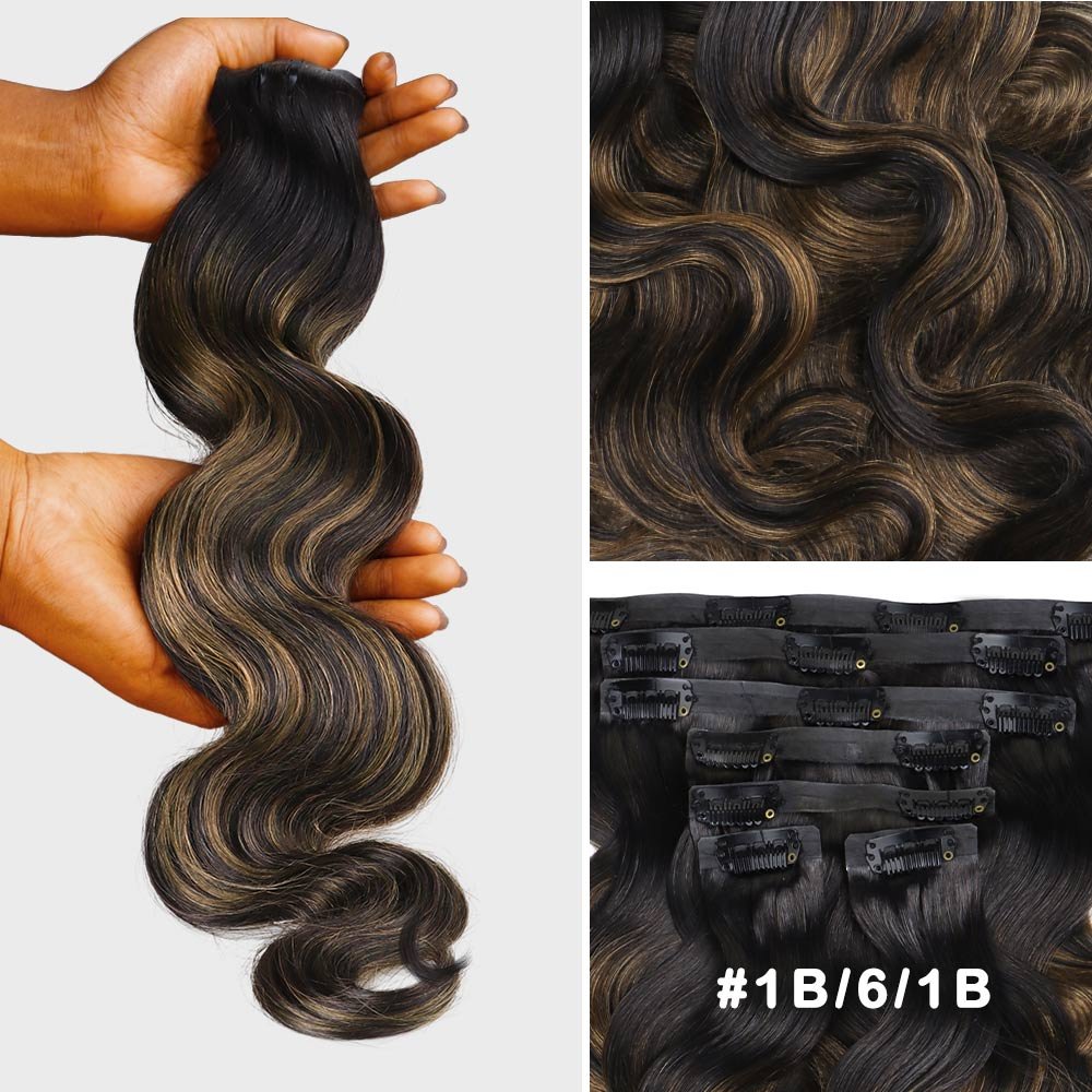 Lashey Seamless Clip in Hair Extensions Super Flat Colored Body Wave Real Human Hair