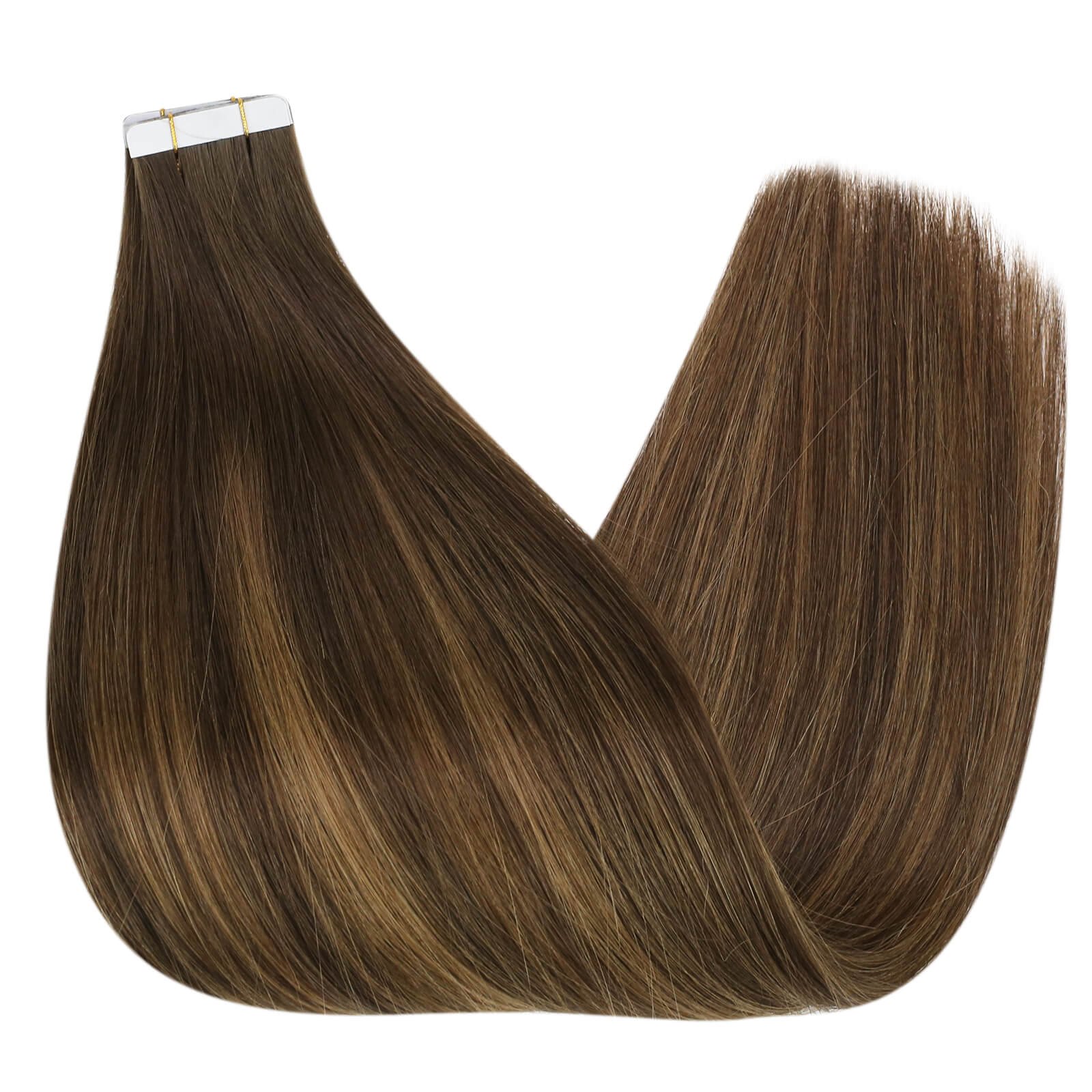 Virgin Human Hair Tape In Extensions Brown Balayage Dark Brown (#DU)
